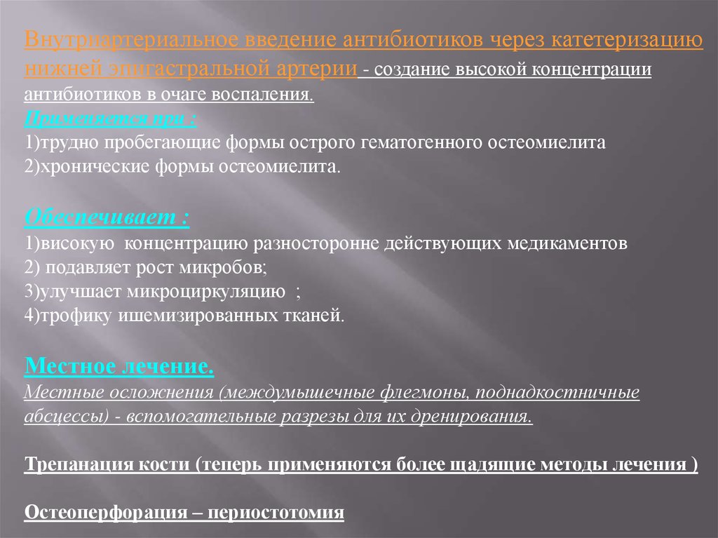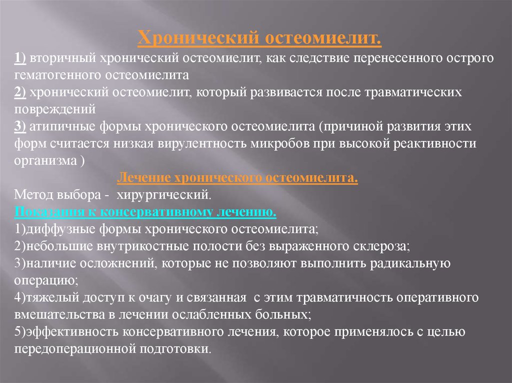 часто применяется при лечении осложнений остеомиелита