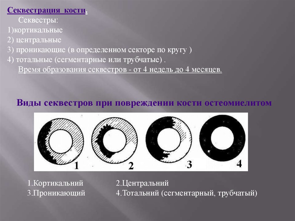 склерозирующего остеосеквестрами. Костно-мозговой канал полностью