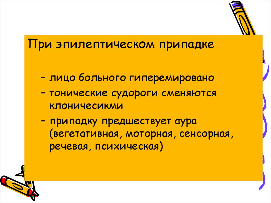 Во время развернутого припадка больномуна месте оказывается такая же