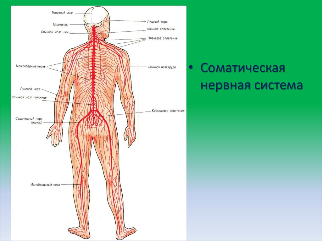 • Автономная нервная система (вегетативная)является непроизвольной, соматическая –