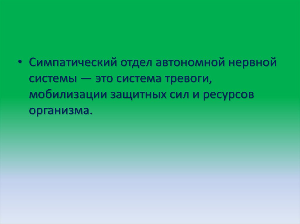 • Симпатический отдел автономной нервнойсистемы — это система тревоги,