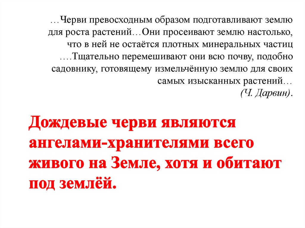 …Черви превосходным образом подготавливают землюдля роста растений…Они просеивают землю настолько,