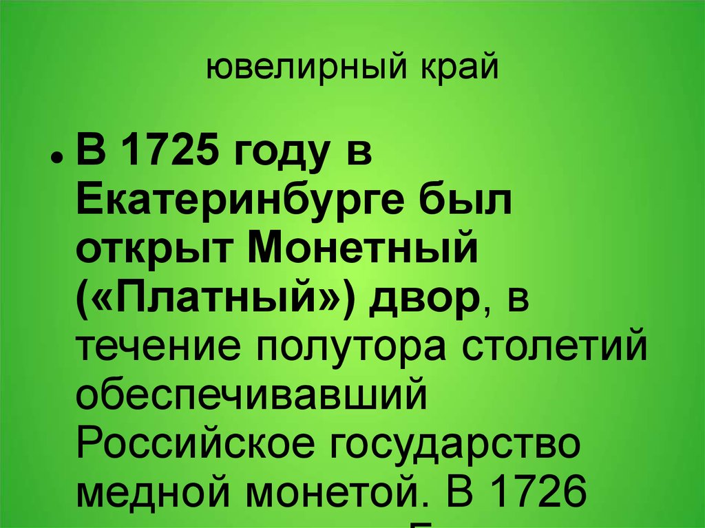 ювелирный крайВ 1725 году в