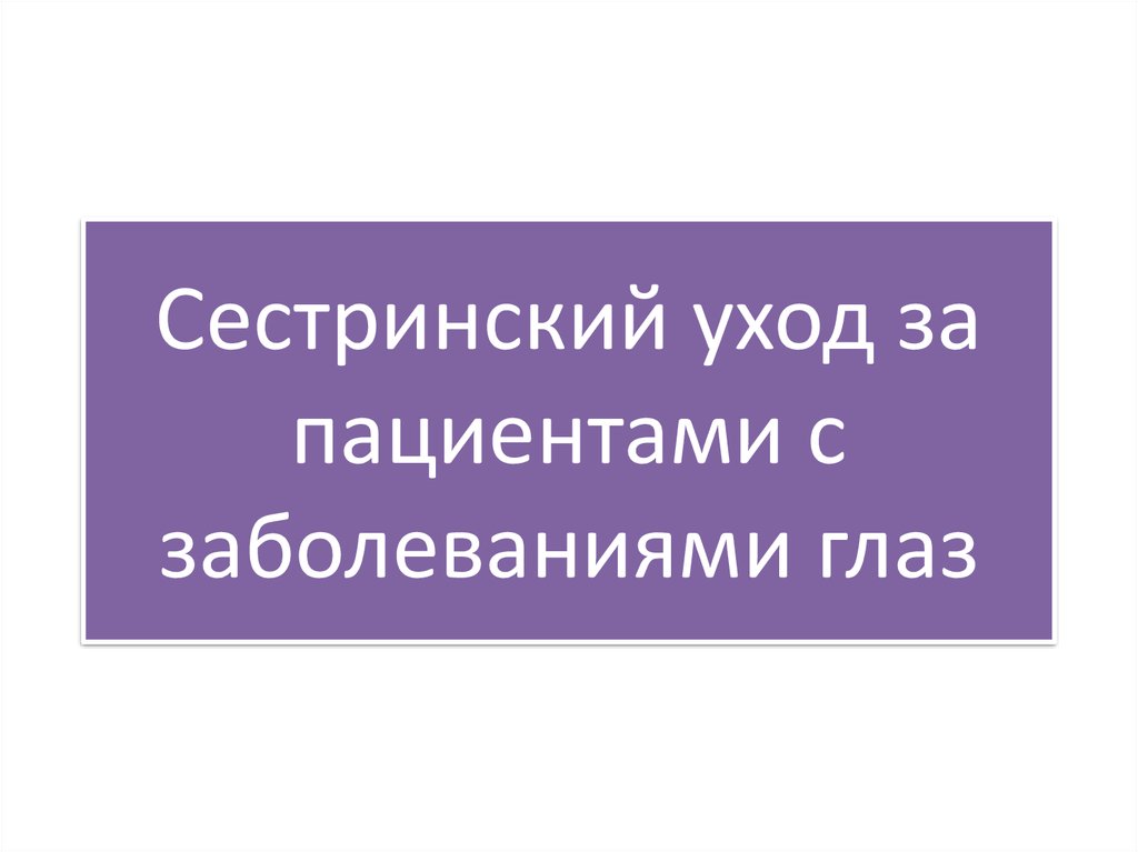 1. Сестринский уход за пациентами с заболеваниями глаз