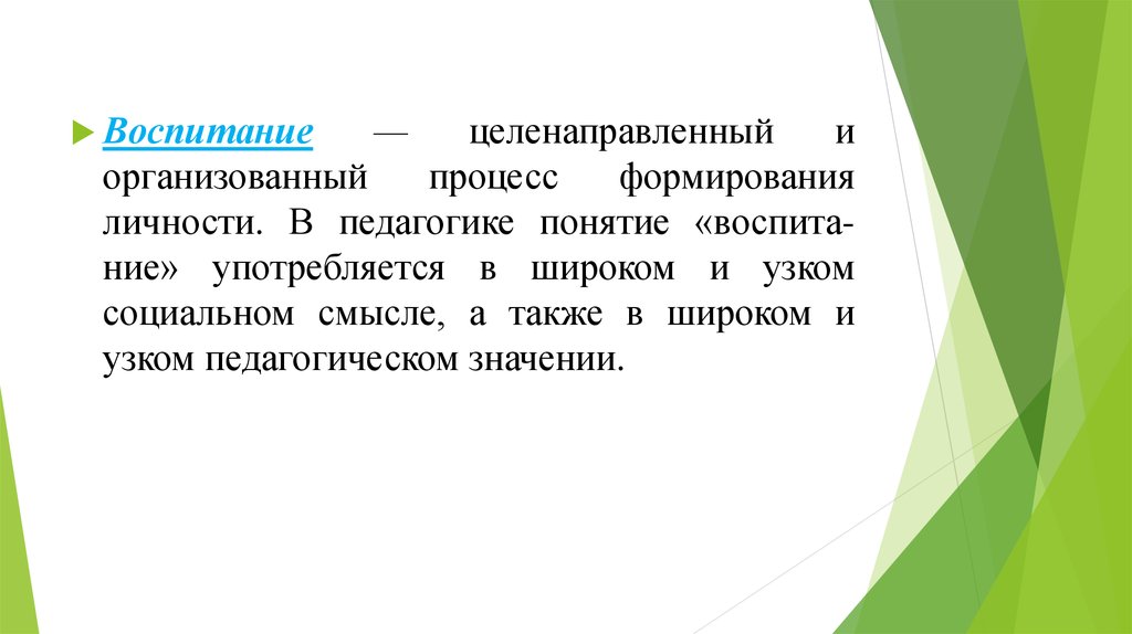 В узком педагогическом смысле воспитание — это