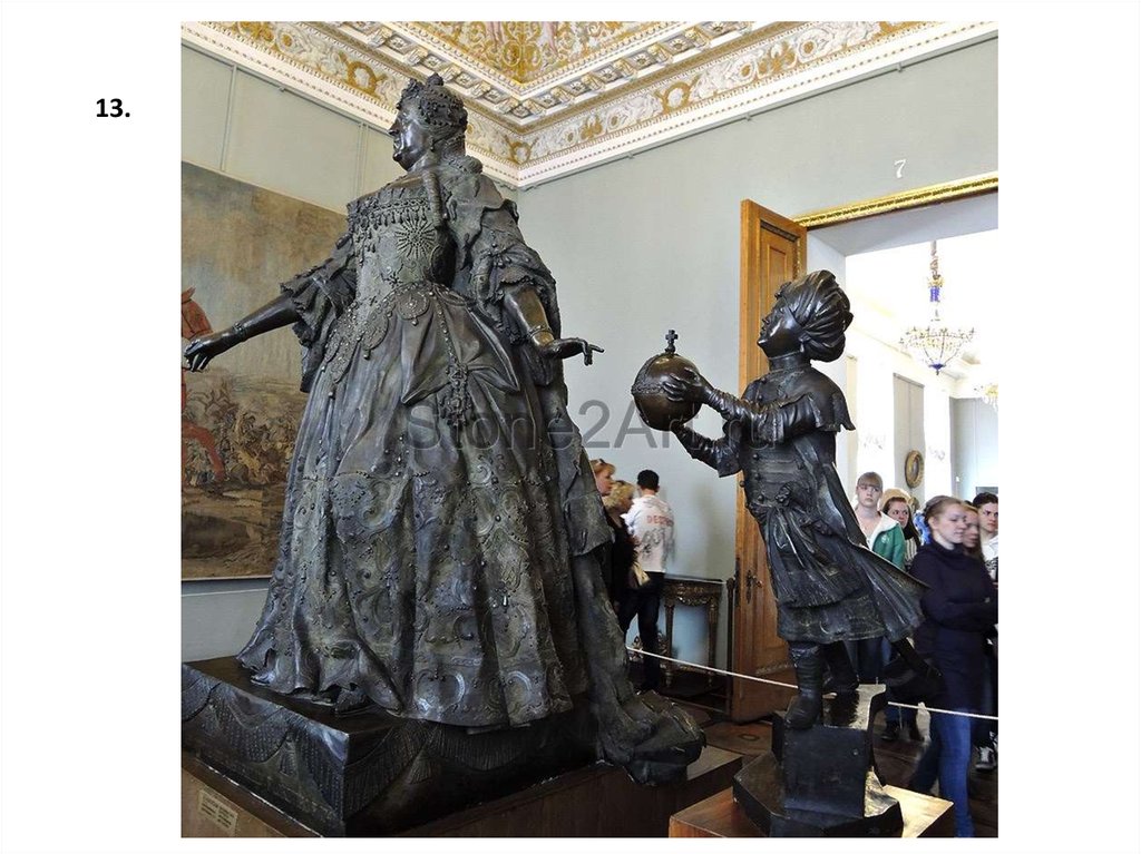 Царь- пушка. 1586. Андрей Чохов. 40-тонн. Длина ствола 5,34 метра. Диаметр ствола 120 см. вес каменного ядра 800кг. Чугунного- 1,97 тонн.5. КУЛЬТУРА РОССИИ XVIII ВЕКА.