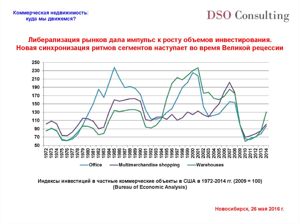 Индексы инвестиций в частные коммерческие объекты в США в 1972-2014 гг. (2009 = 100)