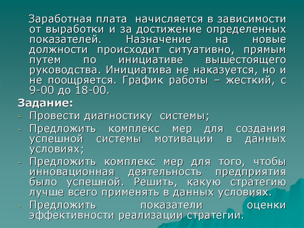 Заработная плата начисляется в зависимостиот выработки и за достижение определенных