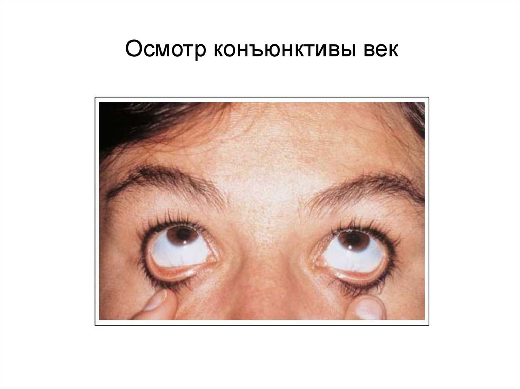 • Наружный осмотр• Осмотр и пальпация век, осмотр