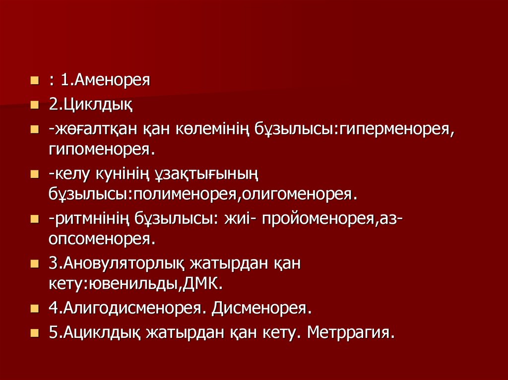 -жөғалтқан қан көлемінің бұзылысы:гиперменорея,