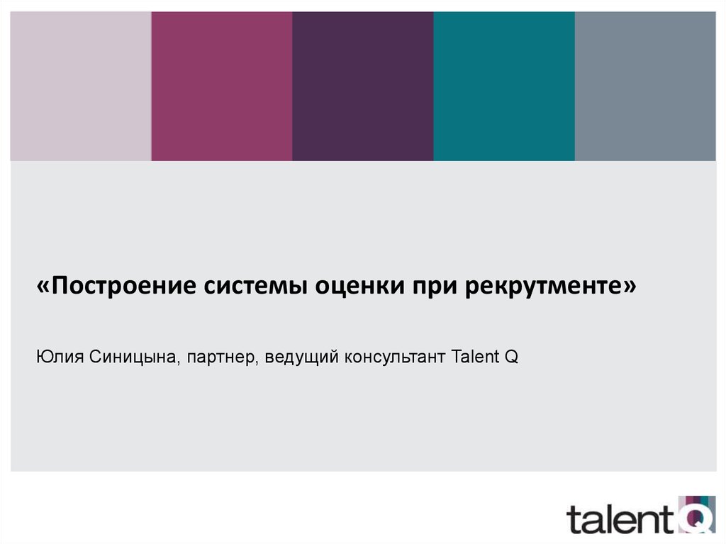 «Построение системы оценки при рекрутменте»Юлия Синицына, партнер, ведущий консультант Talent Q