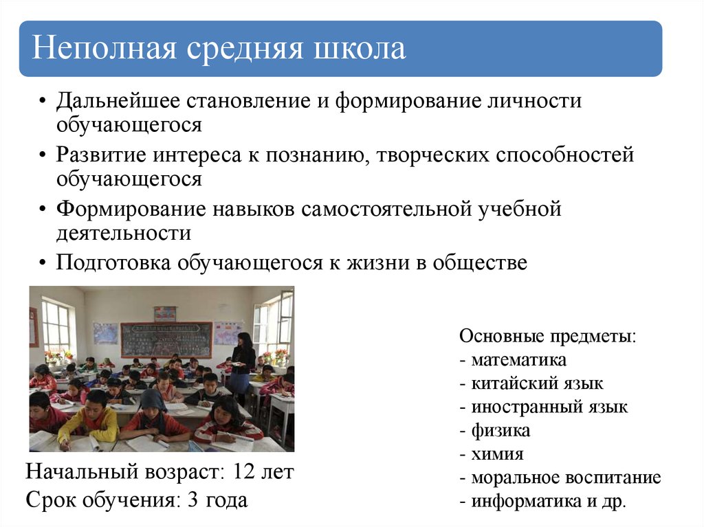 Неполная средняя школа• Дальнейшее становление и формирование личности