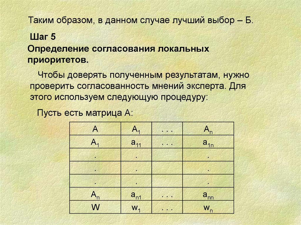 Таким образом, в данном случае лучший выбор – Б.Шаг 5