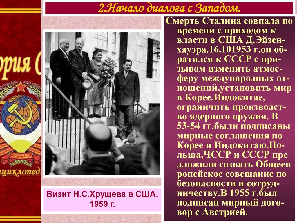 2.Начало диалога с Западом.Смерть Сталина совпала по