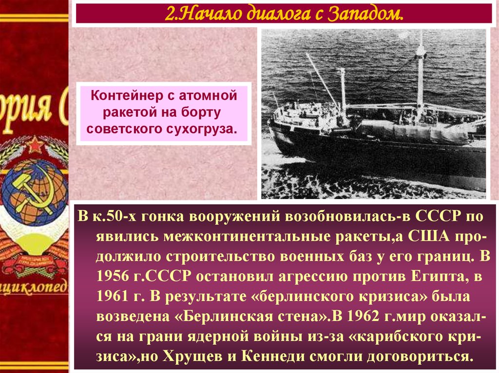 2.Начало диалога с Западом.Контейнер с атомной