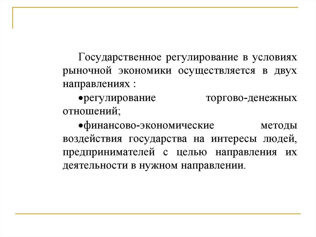 Государственное регулирование в условияхрыночной экономики осуществляется в двух