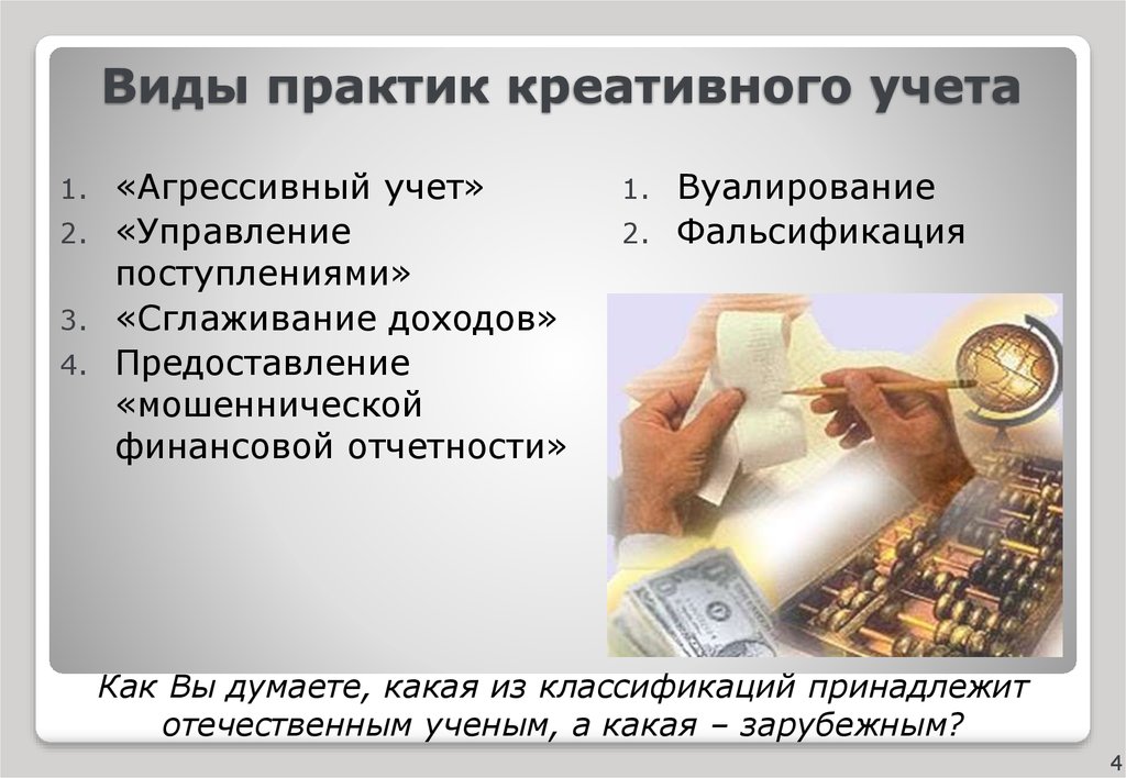 Устинова Я.И., Шапошников А.А. Креативный учет: творческий подход