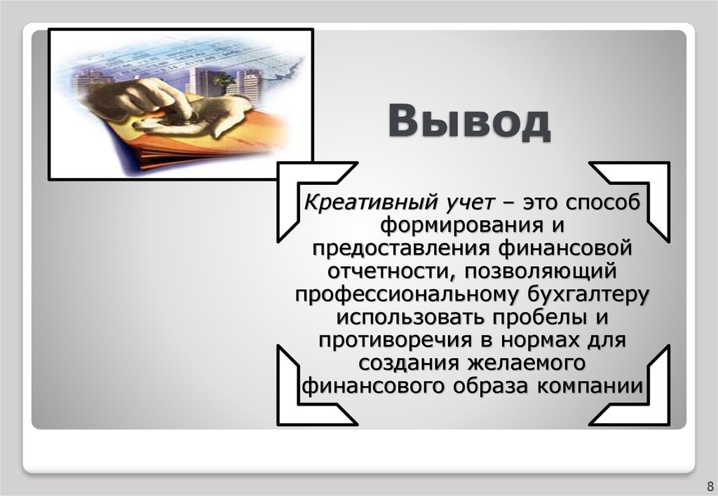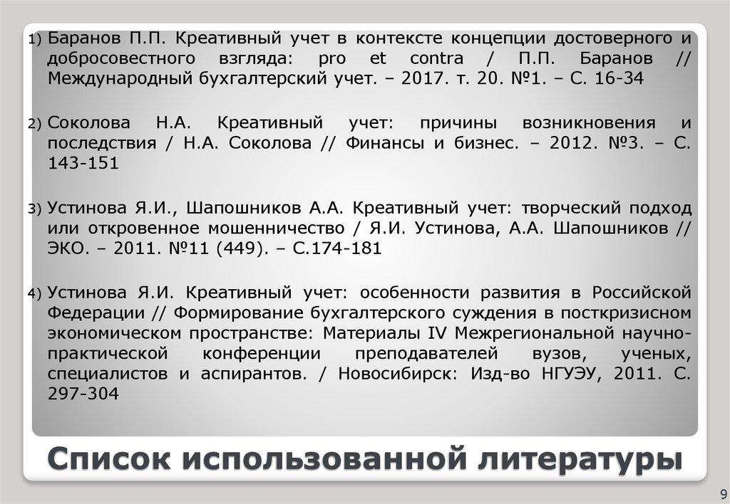 1)Баранов П.П. Креативный учет в контексте концепции достоверного и