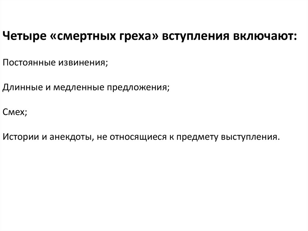 Четыре «смертных греха» вступления включают:Постоянные извинения;