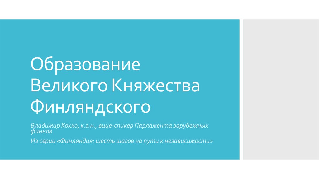 1. Образование Великого Княжества Финляндского
