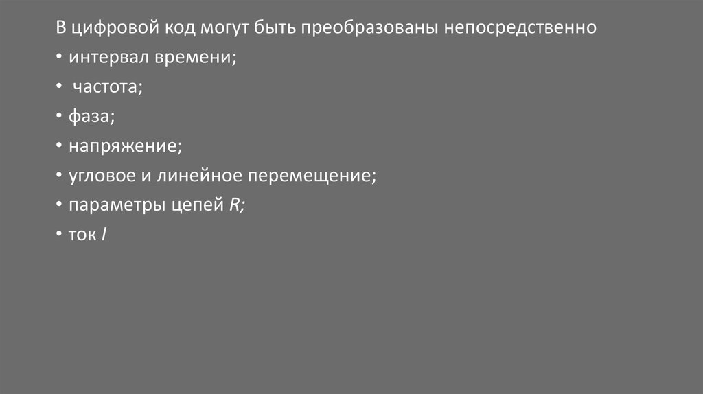 В цифровой код могут быть преобразованы непосредственно• интервал времени;