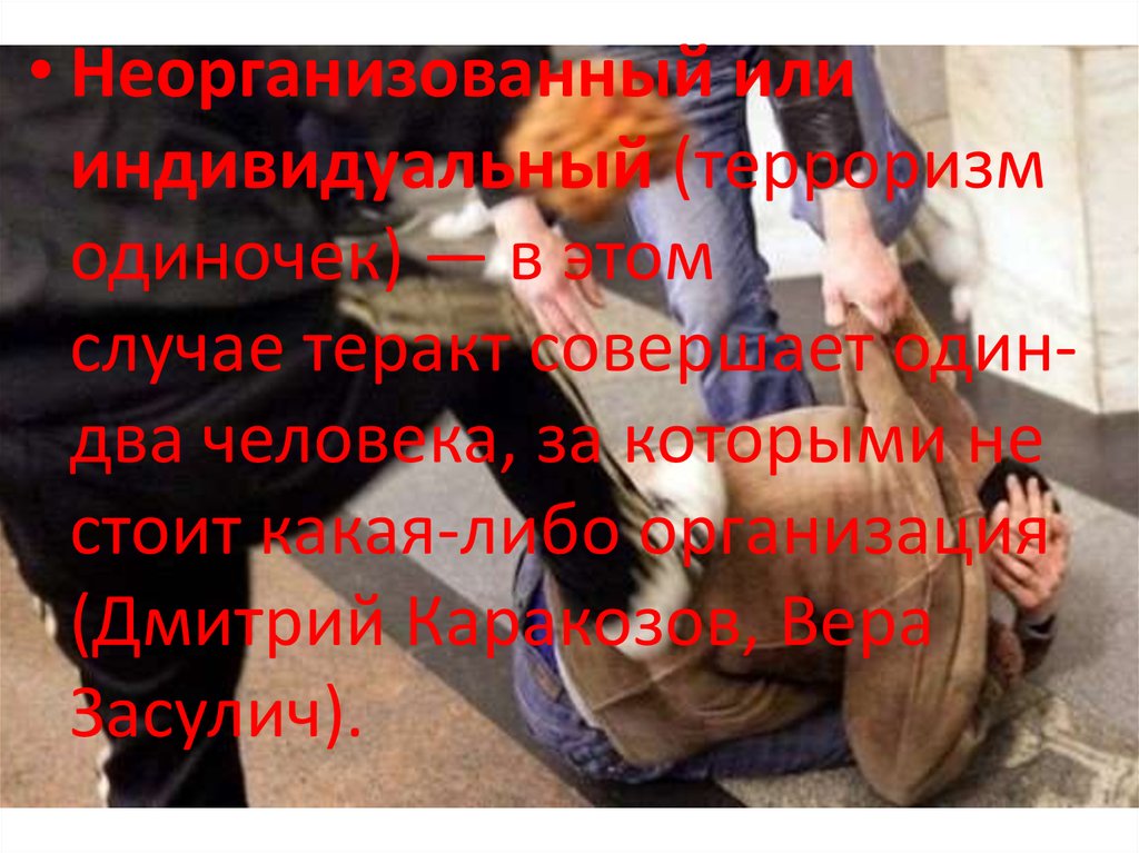 • Неорганизованный илииндивидуальный (терроризм
