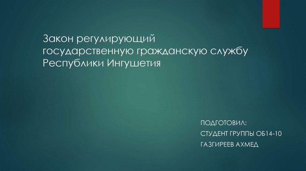 1. Закон регулирующий государственную гражданскую службу Республики Ингушетия