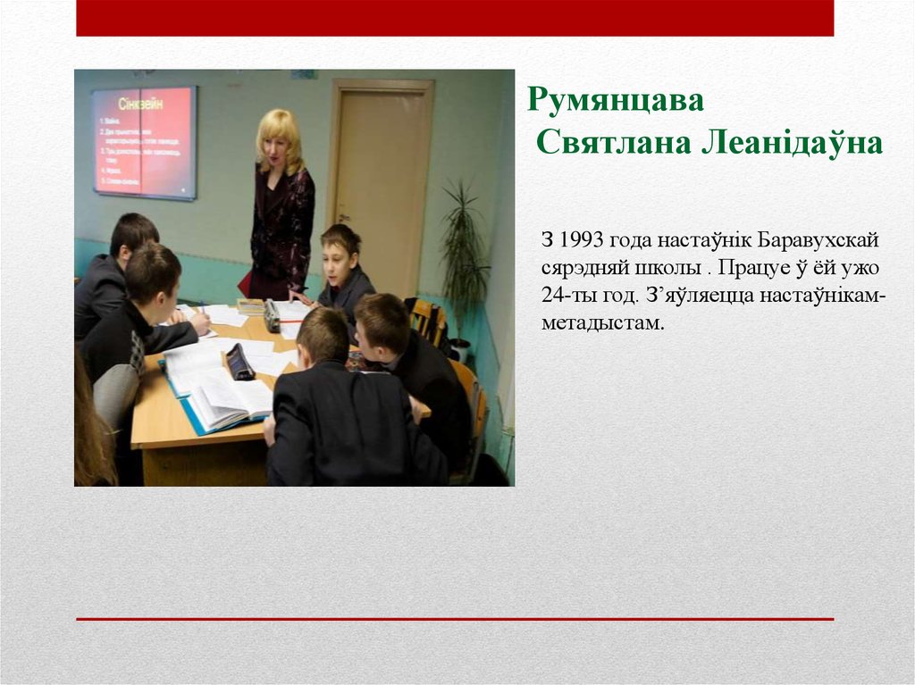 З 1993 года настаўнік Баравухскай