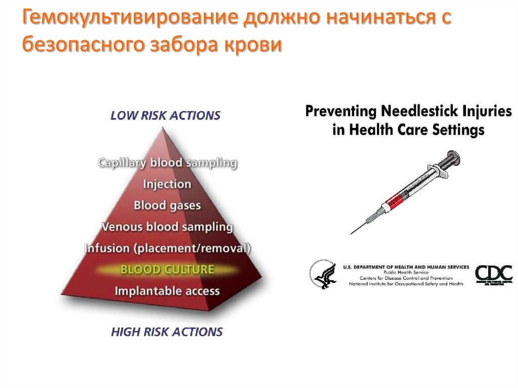 Гемокультивирование должно начинаться сбезопасного забора крови