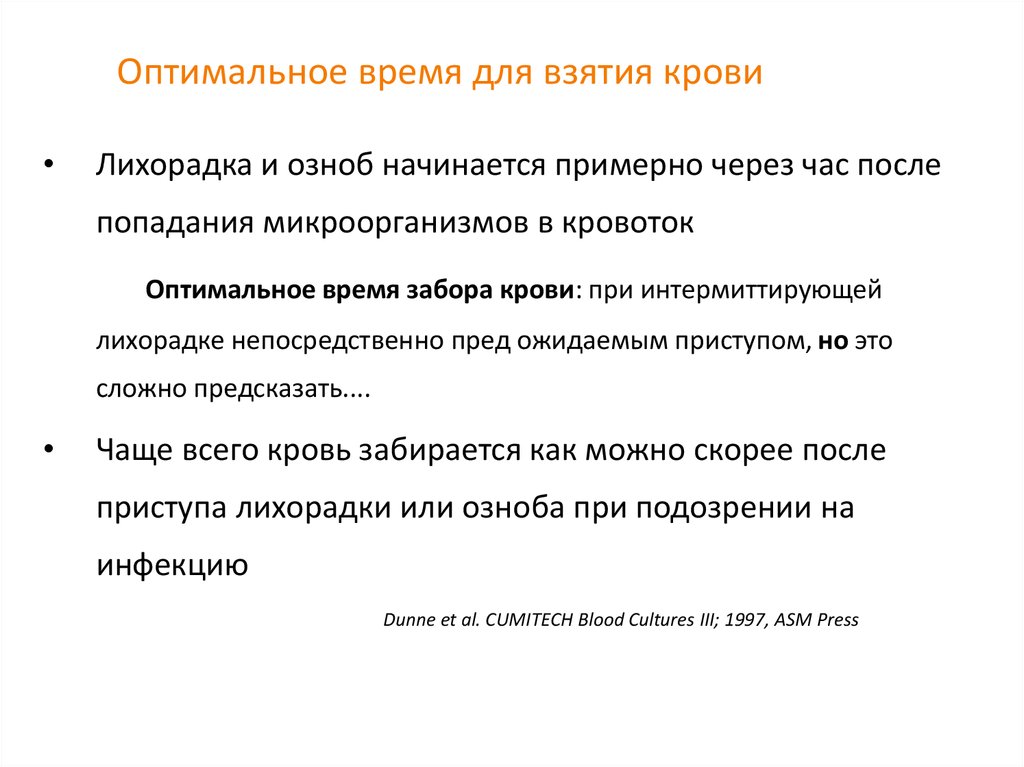 Оптимальное время забора крови: при интермиттирующей