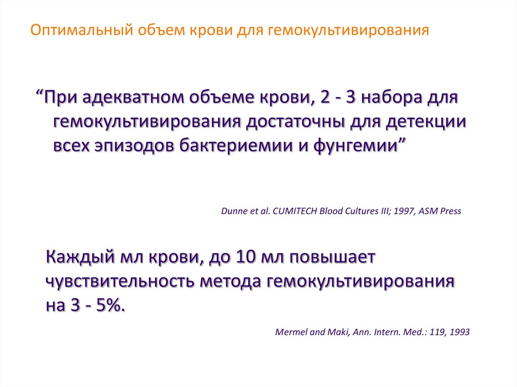 Оптимальный объем крови для гемокультивирования“При адекватном объеме крови, 2 - 3 набора для