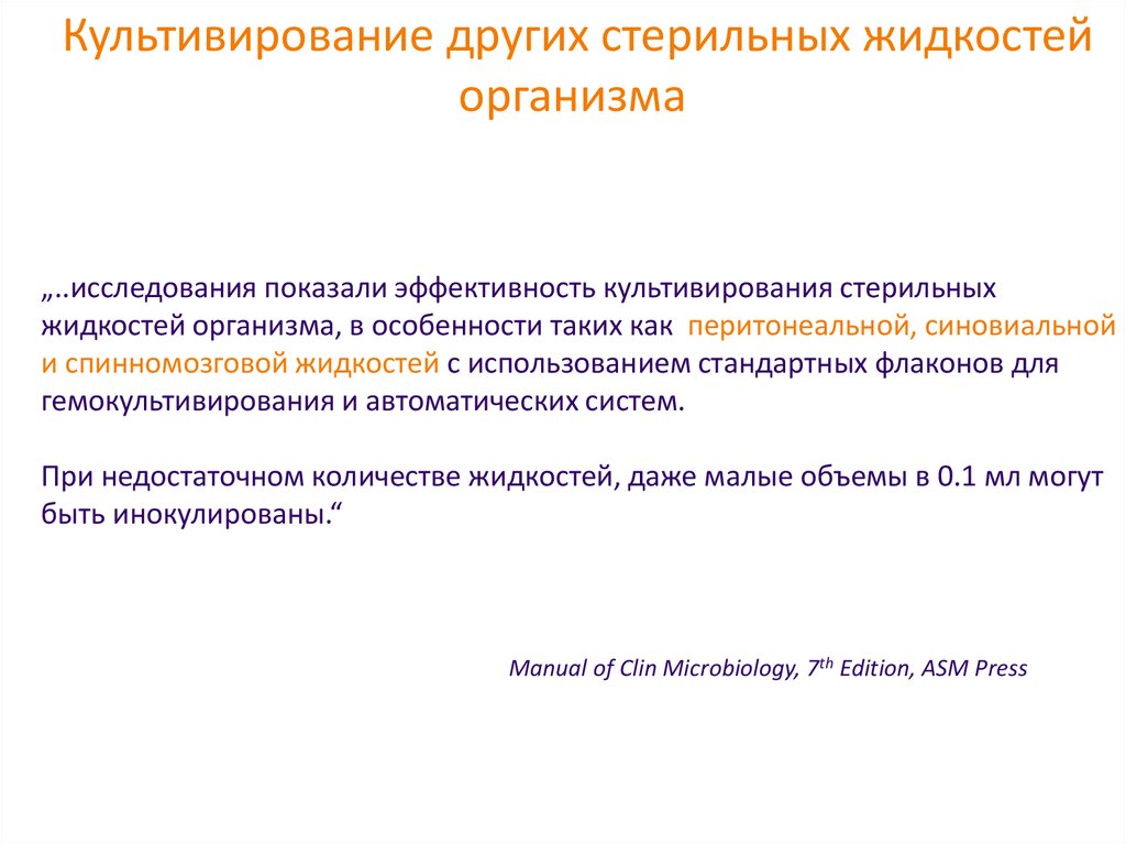 Культивирование других стерильных жидкостейорганизма