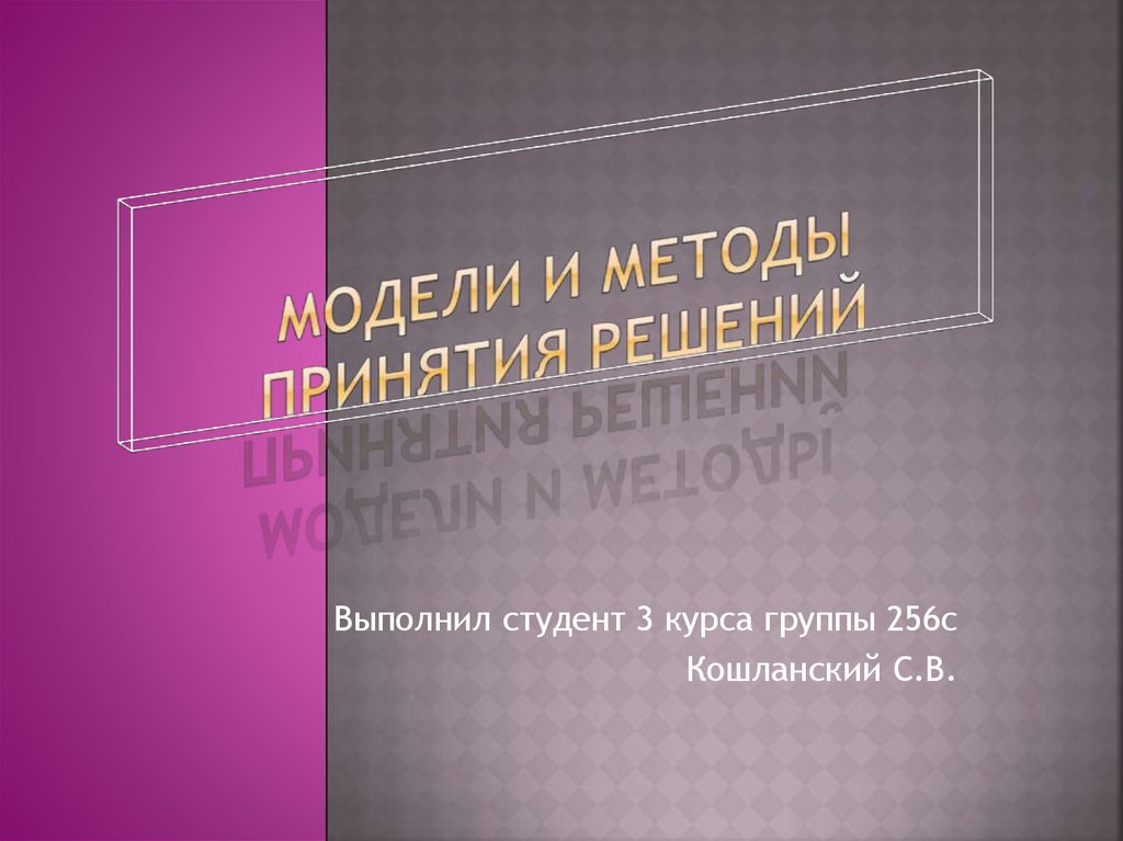 Выполнил студент 3 курса группы 256сКошланский С.В.