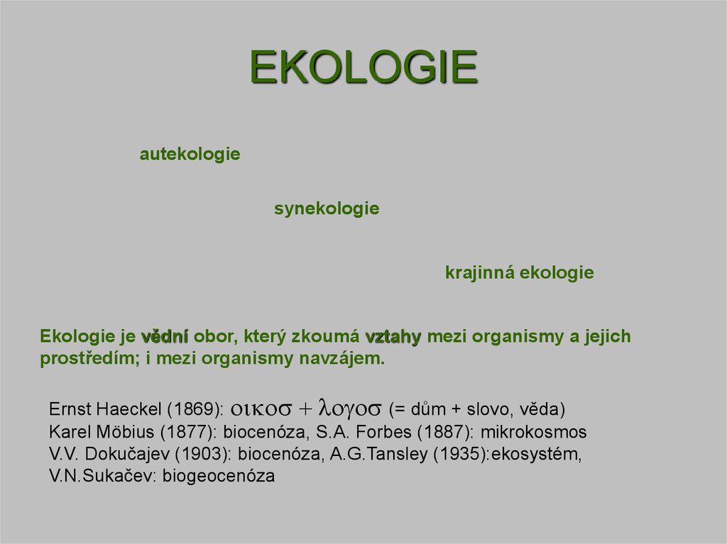 Ernst Haeckel (1869): oikos + logos (= dům + slovo, věda)