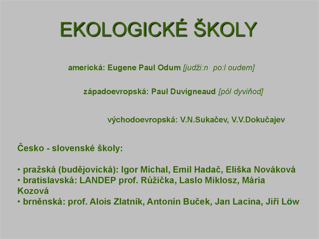 EKOLOGICKÉ ŠKOLYamerická: Eugene Paul Odum [judži:n po:l oudem]