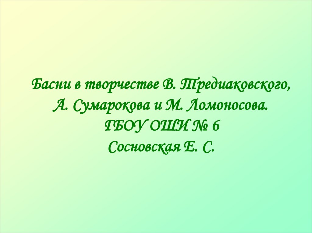 Басни в творчестве В. Тредиаковского,А. Сумарокова и М. Ломоносова.