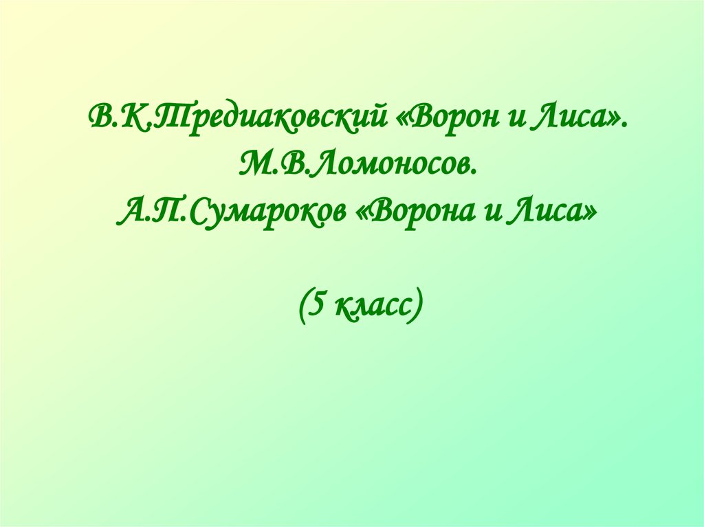 В.К.Тредиаковский «Ворон и Лиса».М.В.Ломоносов.