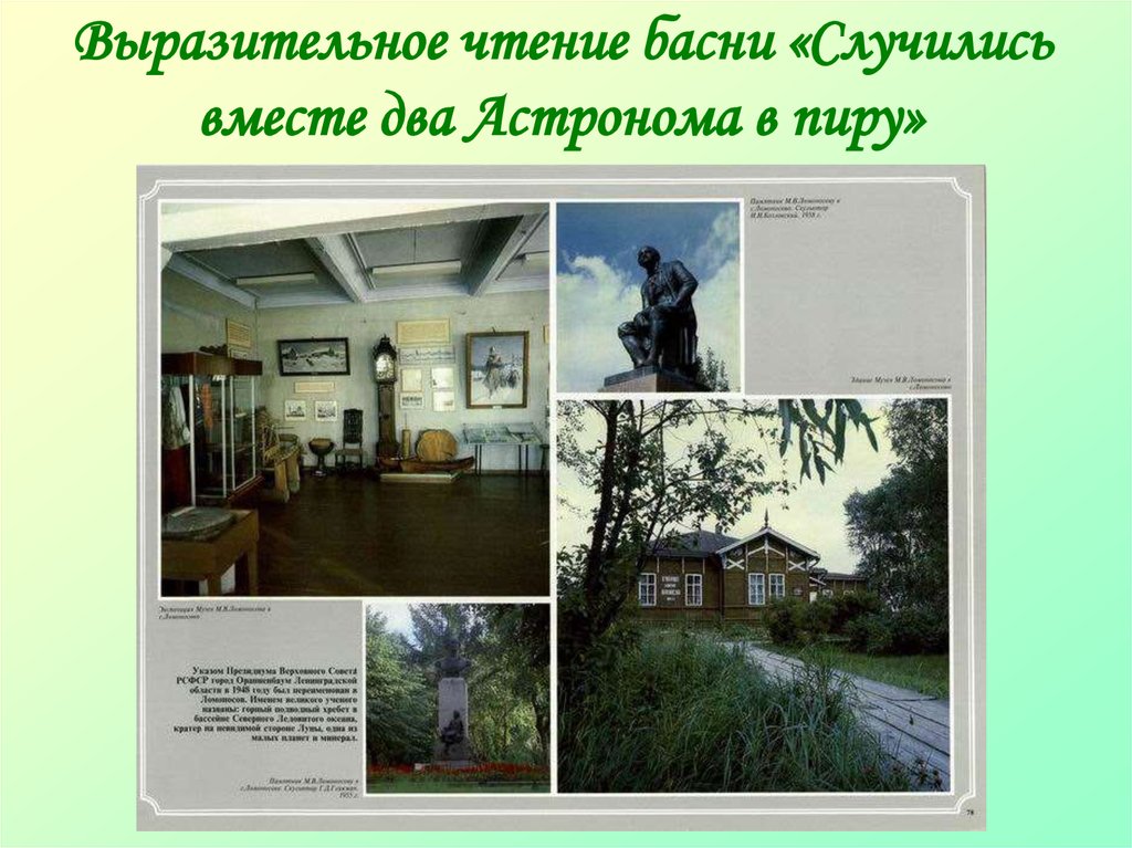 Выразительное чтение басни «Случилисьвместе два Астронома в пиру»