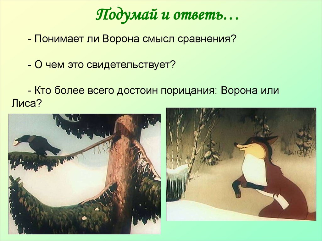Подумай и ответь…- Понимает ли Ворона смысл сравнения?