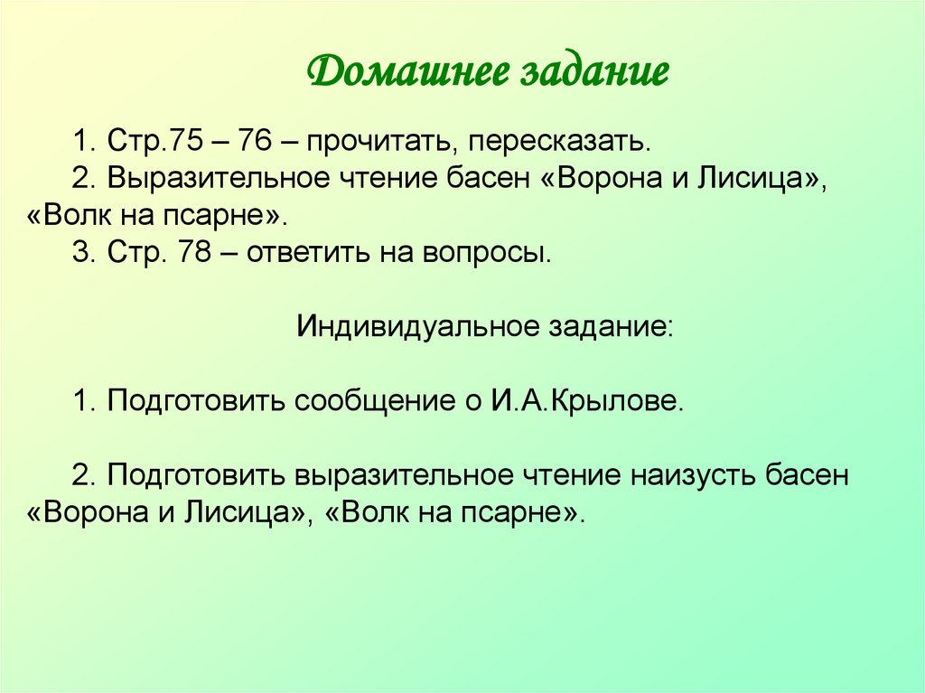 2. Подготовить выразительное чтение наизусть басен
