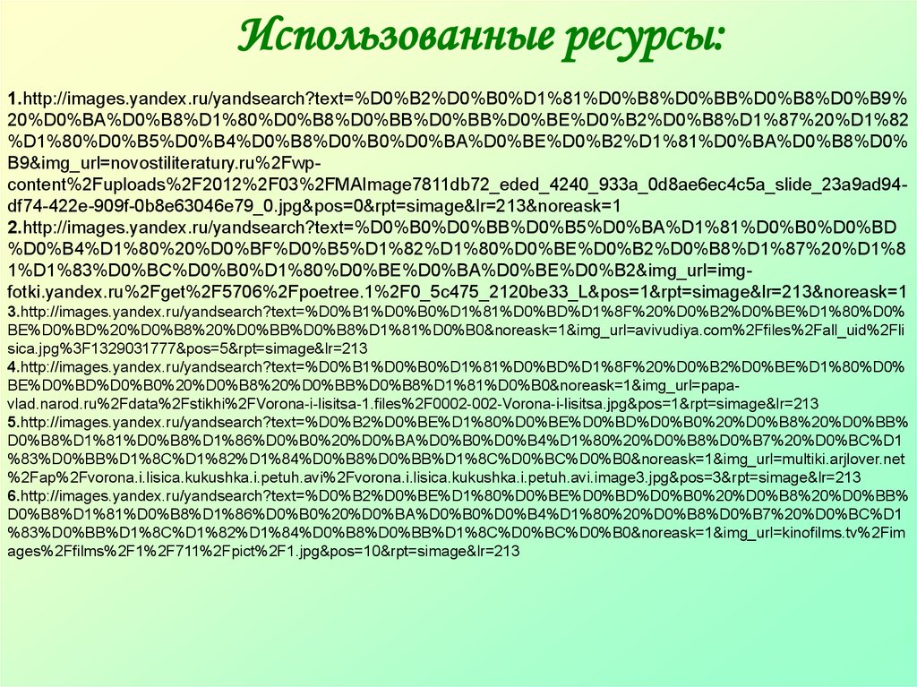 Использованные ресурсы:1.http://images.yandex.ru/yandsearch?text=%D0%B2%D0%B0%D1%81%D0%B8%D0%BB%D0%B8%D0%B9%