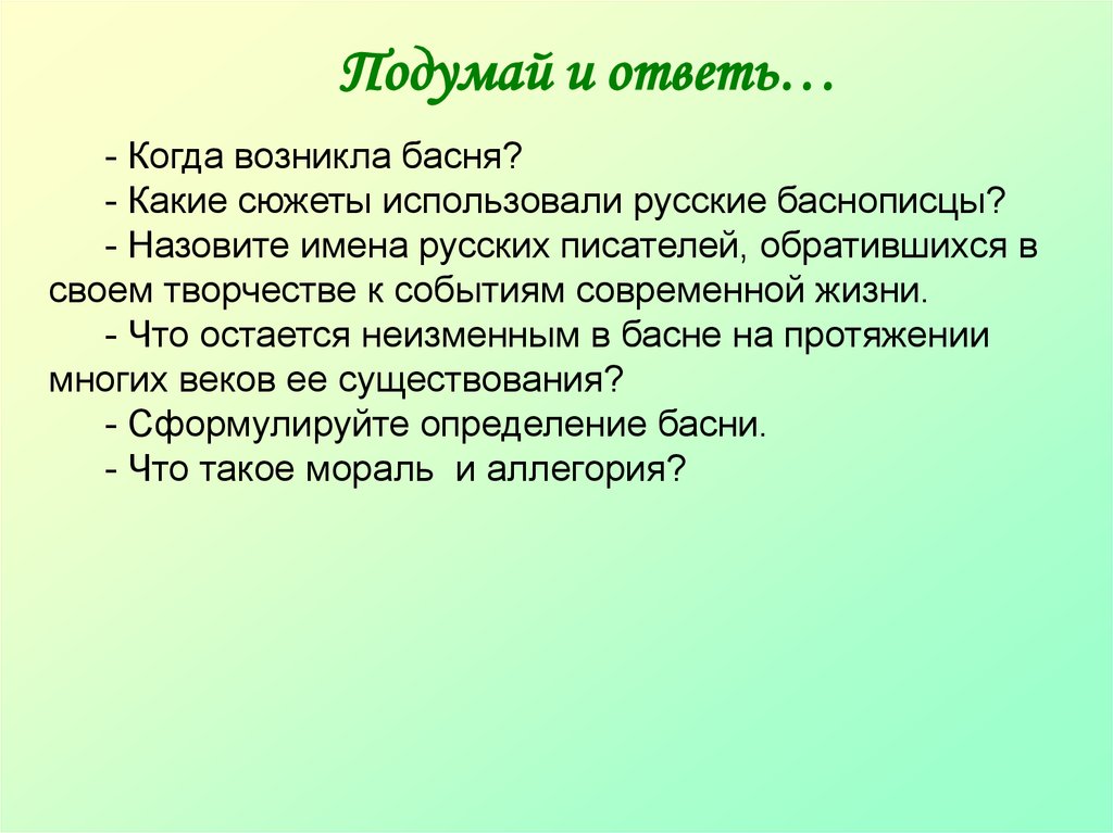 Подумай и ответь…- Когда возникла басня?