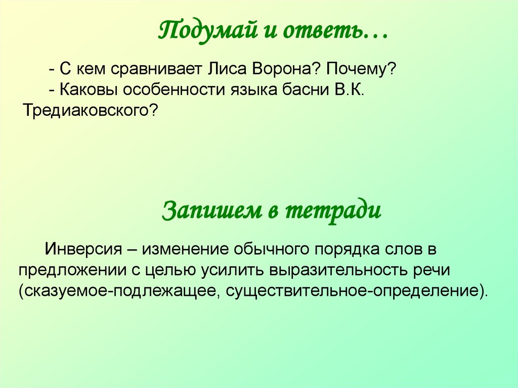 - Каковы особенности языка басни В.К.