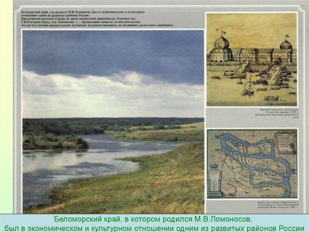 Беломорский край, в котором родился М.В.Ломоносов,был в экономическом и культурном отношении одним из развитых районов России