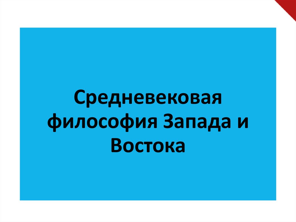 Тема №4 Средневековая философия Запада и Востока