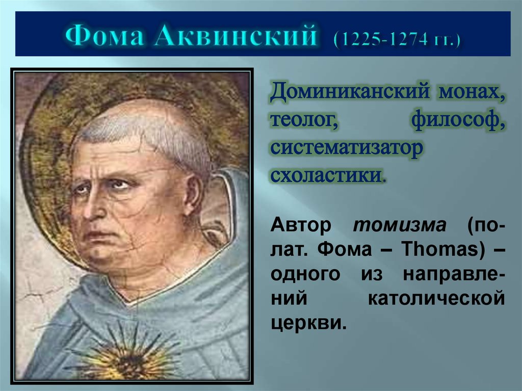 Автор томизма (полат. Фома – Thomas) –одного из направлений