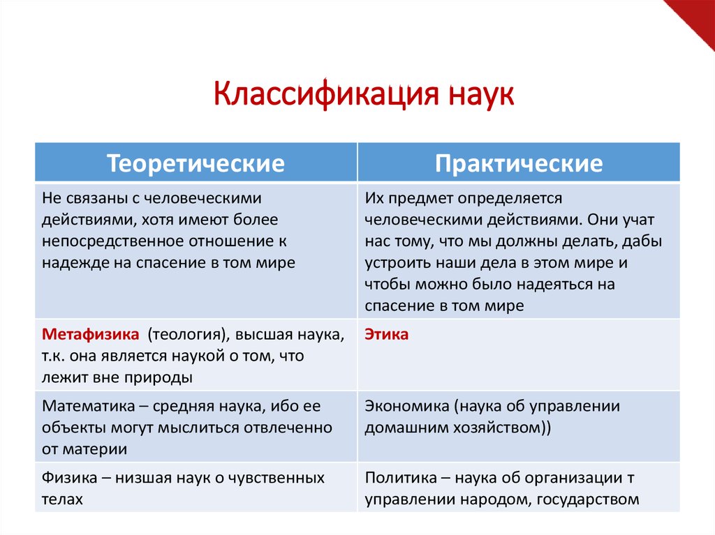 Классификация наукТеоретические