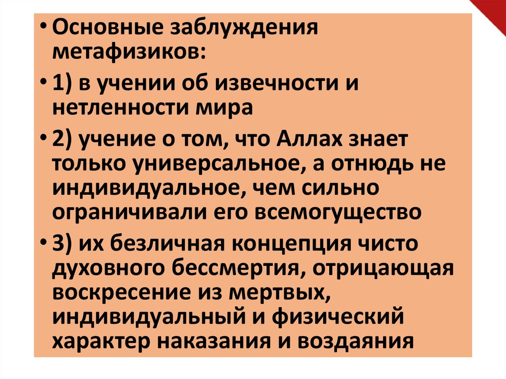 • Основные заблужденияметафизиков: