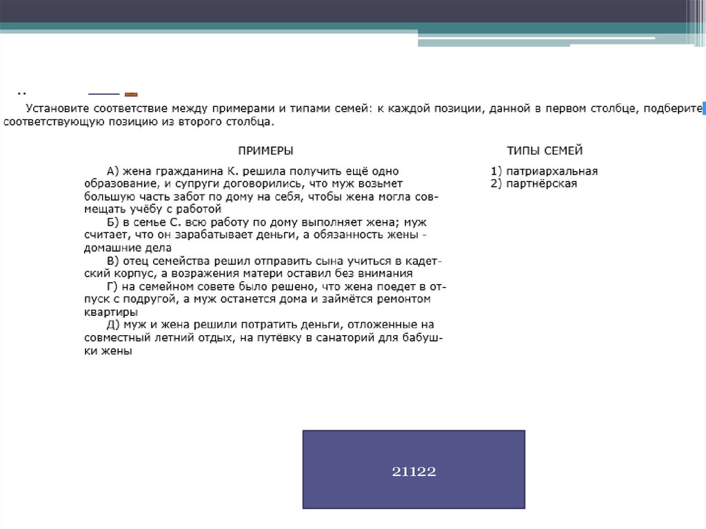 любой признак семьи этого типа, не указанный в условии задания.