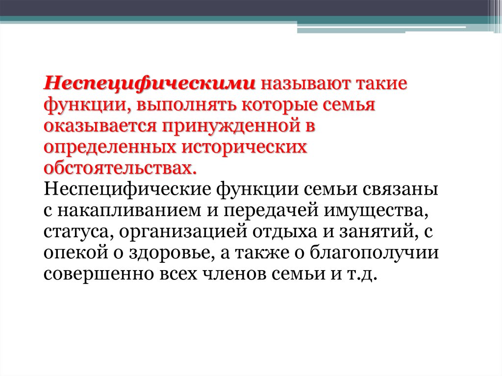 Специфические функции вытекаютиз сущности семьи и остаются